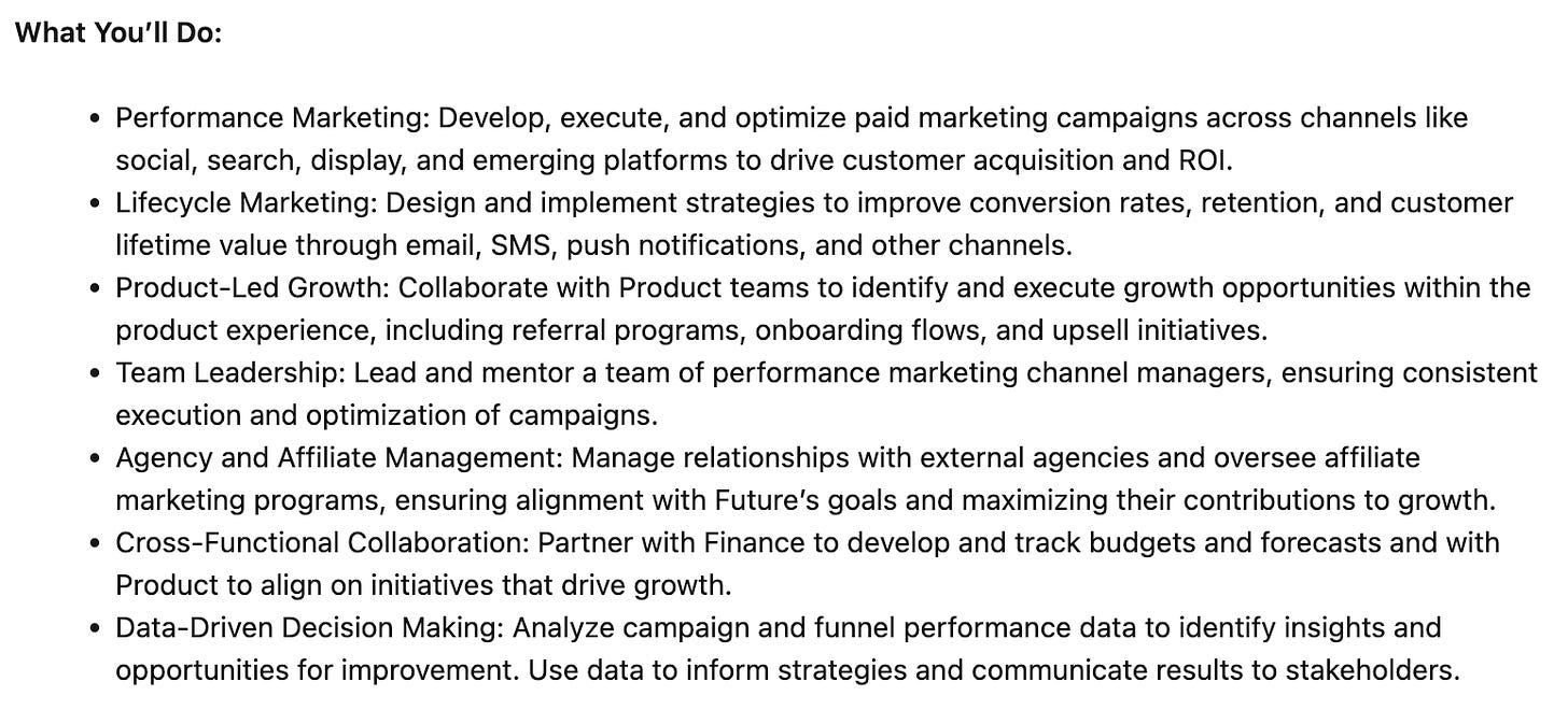 I direct your attention to Future’s Director of Growth Marketing JD, as they clearly get it: