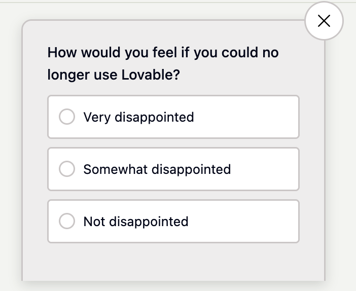 Sean Ellis PMF score: How would you feel if you could no longer use Lovable?