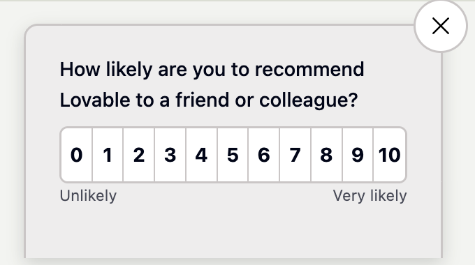 NPS: How likely are you to recommend Lovable to a friend or colleague?