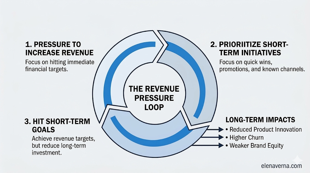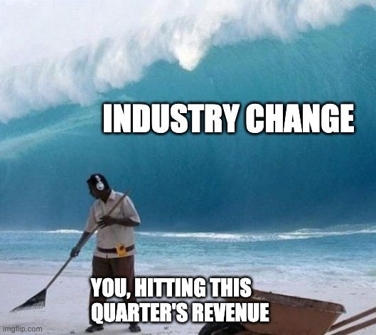 And those are the exact things that revenue addiction prevents. The whole system is built around killing risk tolerance and openness to failure. Every employee has been trained to optimize their work around measurable, short-term revenue impact. All of the infrastructure to take big swings and go for anything besides hitting this quarter’s numbers is gone.