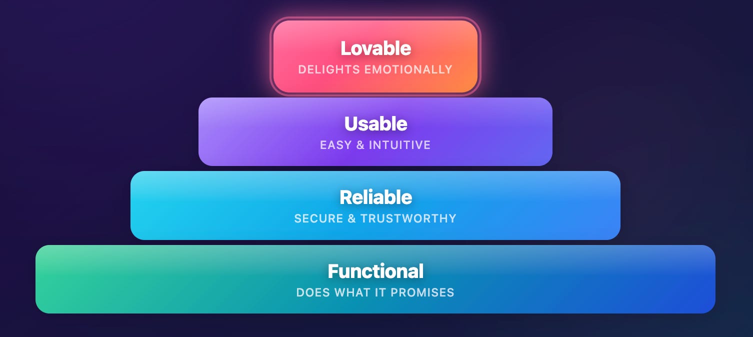 Here’s what nobody’s saying out loud yet: lovability might be the last defensible moat. AI can ship features overnight. It can match functionality in days. What it doesn’t (yet) replicate is the specific emotional relationship your users have built with your product - the way it talks to them, the way it celebrates their wins, the way it handles their mistakes. That stuff compounds. And it’s really hard to copy.