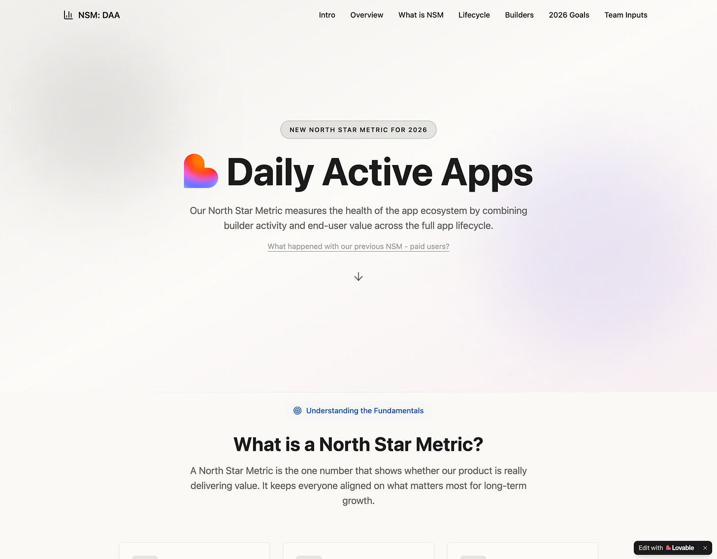 I want to create an interactive app that explains lovable's new northstar metric - Daily Active Apps (i'll provide a full write up on it) + create an ability for visitors to select KPI's they’ll work on to drive this NSM forward. It needs to be interactive and beautiful. On brand for Lovable.