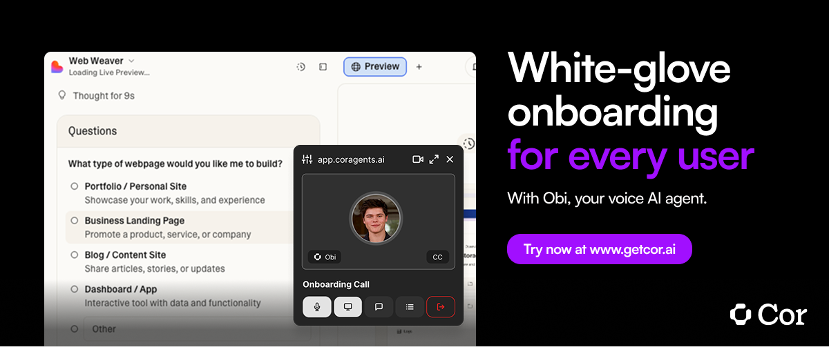 This post is brought to you by Cor: Obi by Cor is a voice AI agent for customer onboarding and user activation. Embedded directly in your product, Obi guides users through real workflows in a two-way conversation, helping them understand how to implement their specific use cases, not just showing where to click.