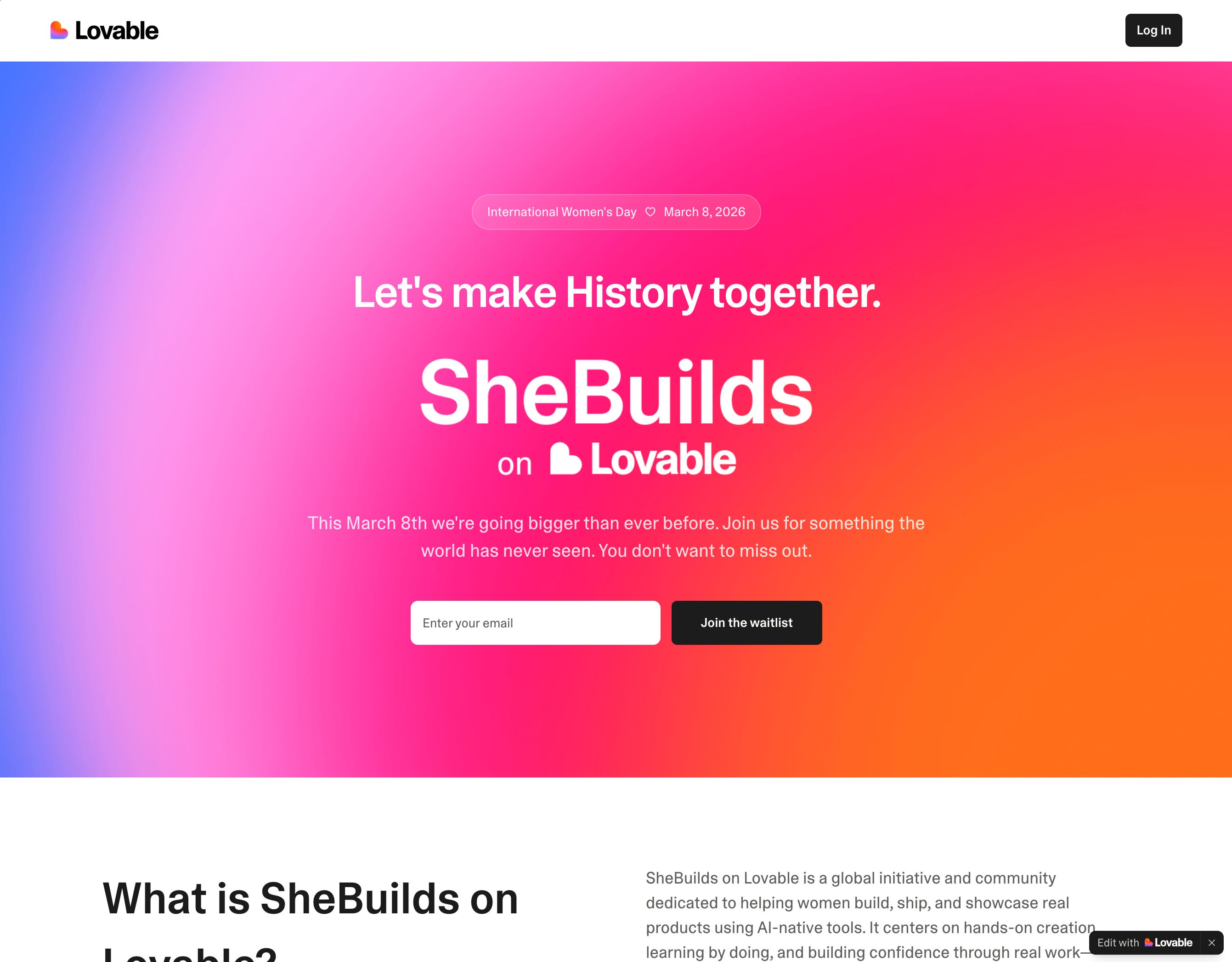 The idea was planted: SheBuilds on Lovable - a 48-hour buildathon for women, powered by Lovable.